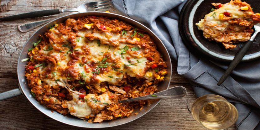 9. Once the cheeses are melt and incorporated into the rice, the casserole is ready. Serve the smoky hot Mexican chicken & rice casserole and enjoy!
